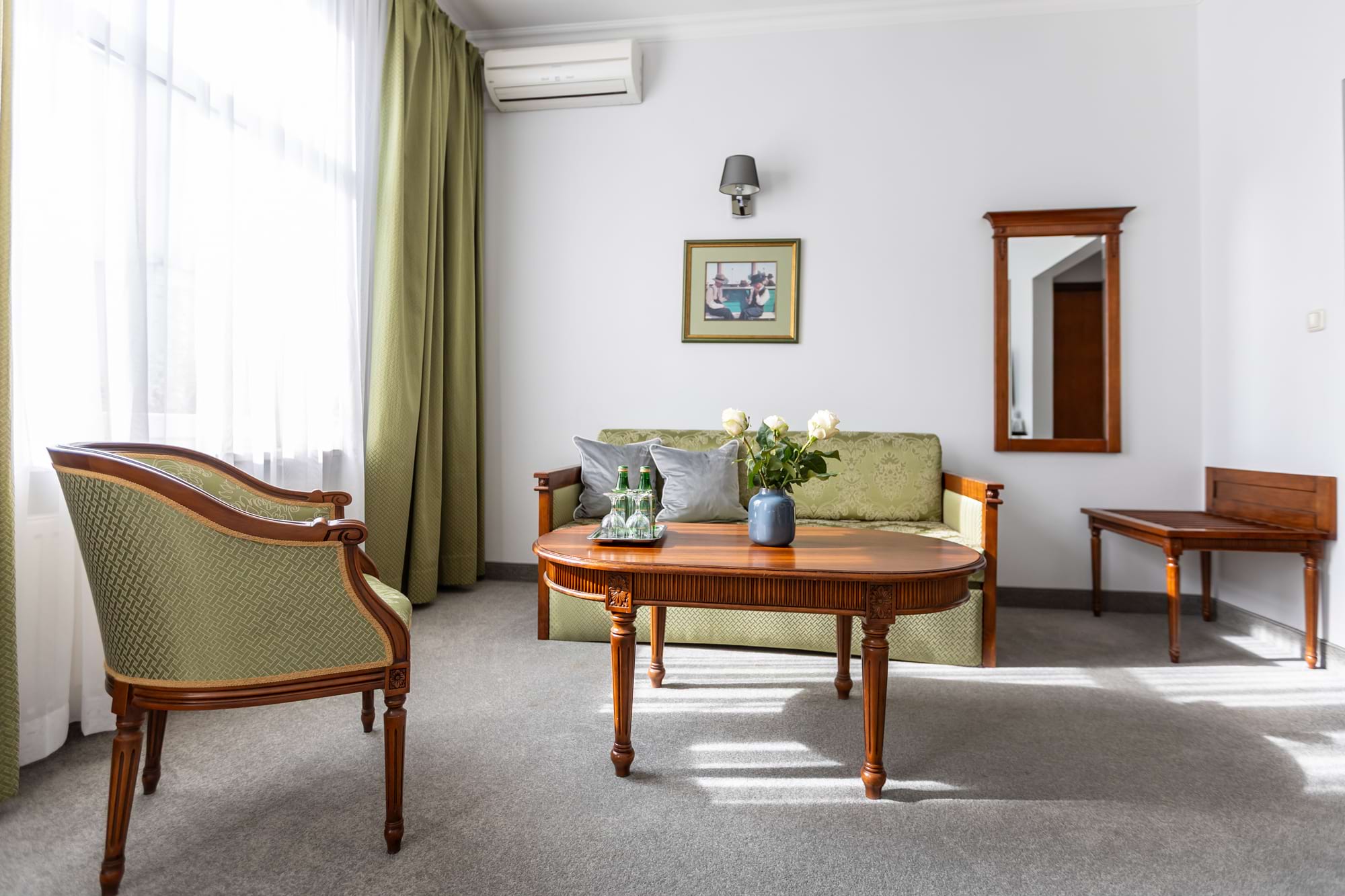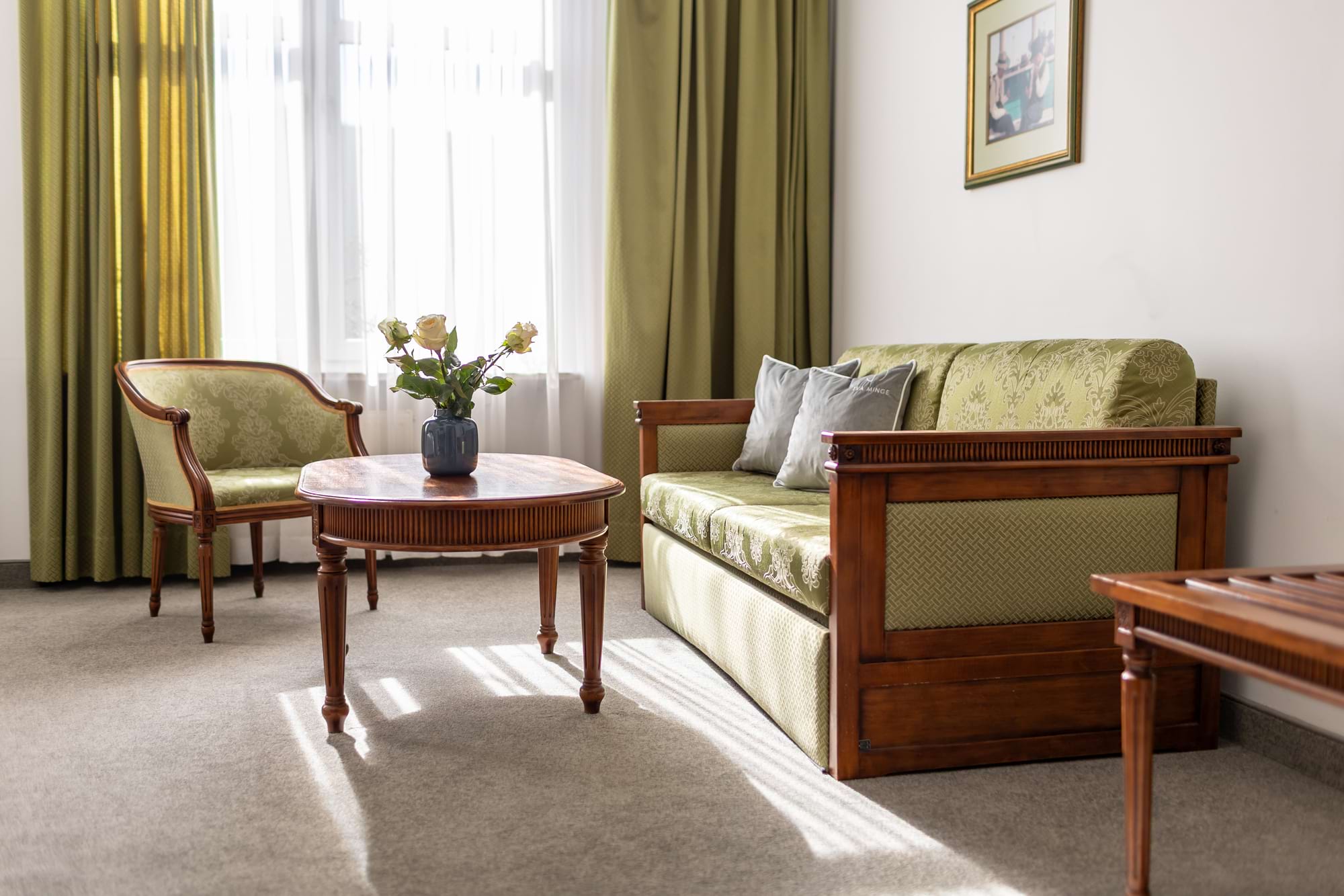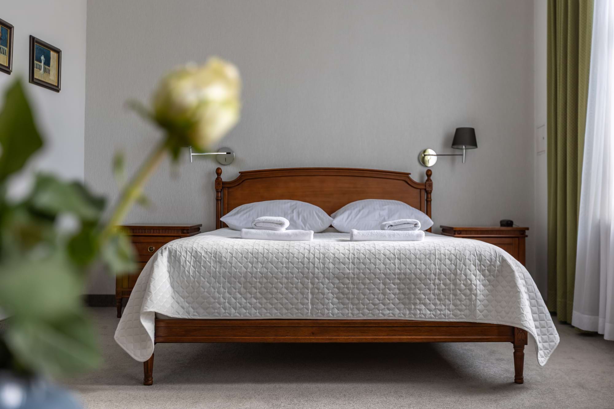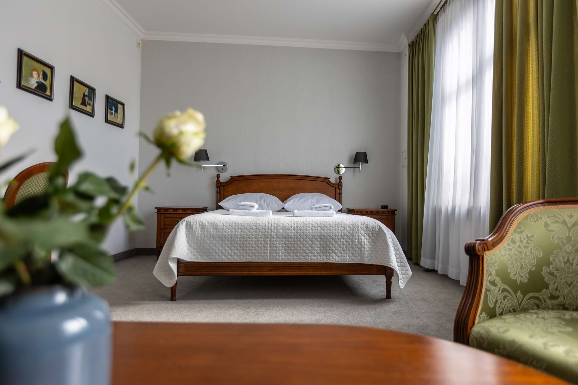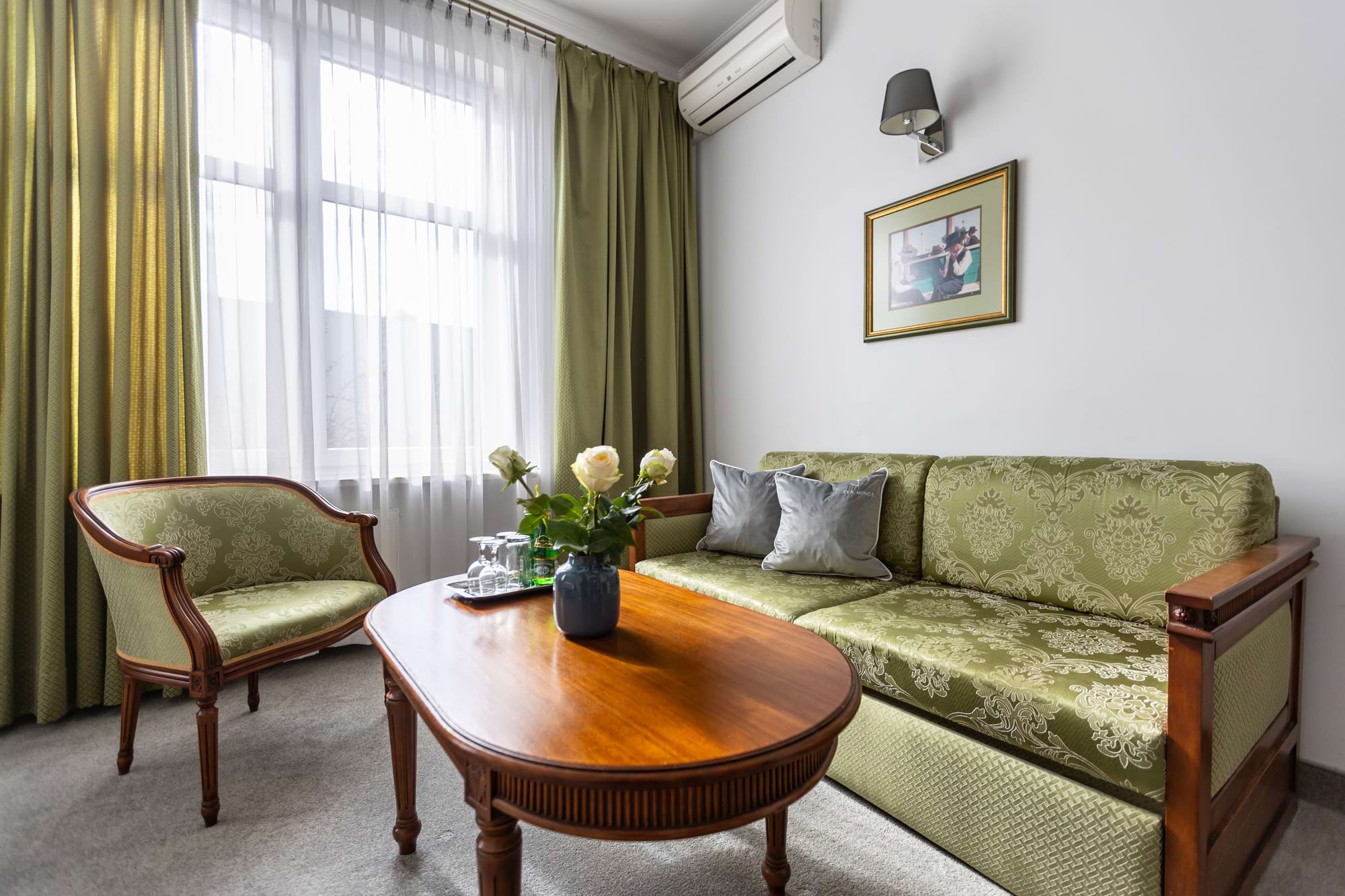 Przestronny pokój dwuosobowy Deluxe o powierzchni 30 m² to połączenie komfortu i elegancji. Goście mają do dyspozycji duże łóżko podwójne oraz rozkładaną sofę, część wypoczynkową i patio z widokiem. Pokój wyposażony jest w klimatyzację indywidualną, telewizor z płaskim ekranem i kanałami kablowymi, minibar oraz zestaw do parzenia kawy i herbaty. W prywatnej łazience czekają miękkie ręczniki, szlafroki, kapcie, zestaw kosmetyków oraz suszarka do włosów. Dopełnieniem wygody są sejf na laptopa, biurko, szafa, sprzęt do prasowania i bezpłatne Wi-Fi. Pokój przeznaczony jest dla osób niepalących.